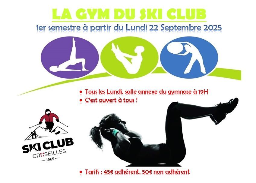 - GYM du Ski Club (2ème semestre) : tous les lundi de 18h50 à 20h00, dans la salle Annexe du Gymnase des Ebeaux