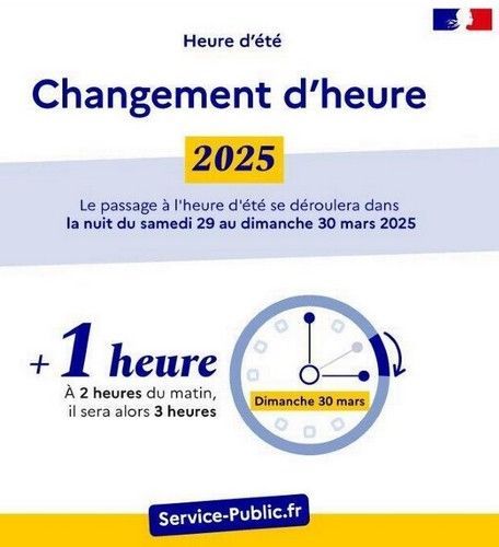 Le passage à l'heure d'été se déroulera dimanche 30 mars 2025 à 2 heures du matin.